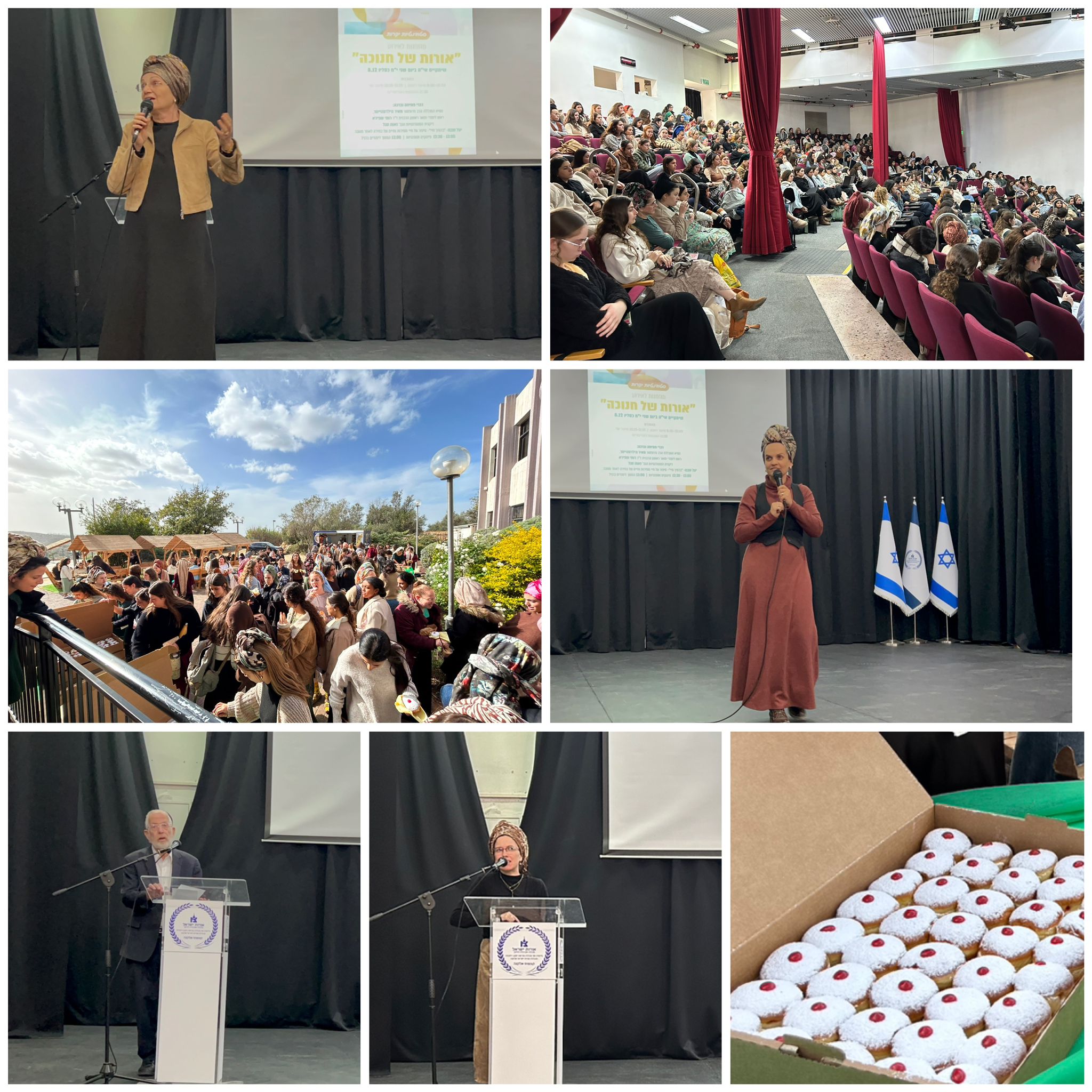 יעל שיתפה את סיפורה האישי בעקבות פיגוע הטרור שבו נרצח בעלה, הרב רזיאל שבח, וסיפרה על הדרך שעברה מאז – התמודדות, בחירה בחיים ויצירת משמעות מחודשת. דבריה העמוקים נגעו ללב והותירו רושם רב על הסטודנטיות. לאורך היום הוצבו דוכני לבוש ואקססוריז במיוחד עבור הסטודנטיות, שהוסיפו לאווירה החגיגית. בסיום היום נהנו הסטודנטיות מסופגניות חמות ומתוקות שנזכה תמיד להפיץ אור, להתחזק ולגדול יחד. חנוכה שמח