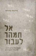 אל תמהר לעבור![]() "עד הכניסה לכלא הייתי מורה, בחור בסדר בסך הכל, משלם מיסים, עושה מילואים. כל זה נגמר ברגע בו גרמתי לתאונת דרכים קטלנית. עם מספר האסיר החדש אני הופך לאזרח במדינת שב"ס: אקס טריטוריה עם חוקים, שפה ואנשים אחרים ממה שהתרגלתי להכיר, וכדאי מאוד שאתחיל..." אלקנה ברכיהו היה בדרכו הביתה לאחר עוד יום עבודה שגרתי. באמצע הדרך, הוא ביצע פנייה לא נכונה בצומת והתנגש במשאית. התוצאה היתה טרגית: אישה שחלפה במקום באותו הרגע נהרגה ואלקנה הורשע בגרימת מוות ברשלנות ונידון לשנת מאסר בפועל. כך חייו התהפכו מקצה לקצה וכך נולד סיפורו, שנכתב בכלא יום אחר יום בתוך מחברת צהובה קטנה שקיבל מאימו. ● איך שורדים את הלילה הראשון בתא? |